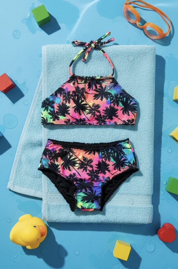 Biquini cropped infantil coqueiros colorido