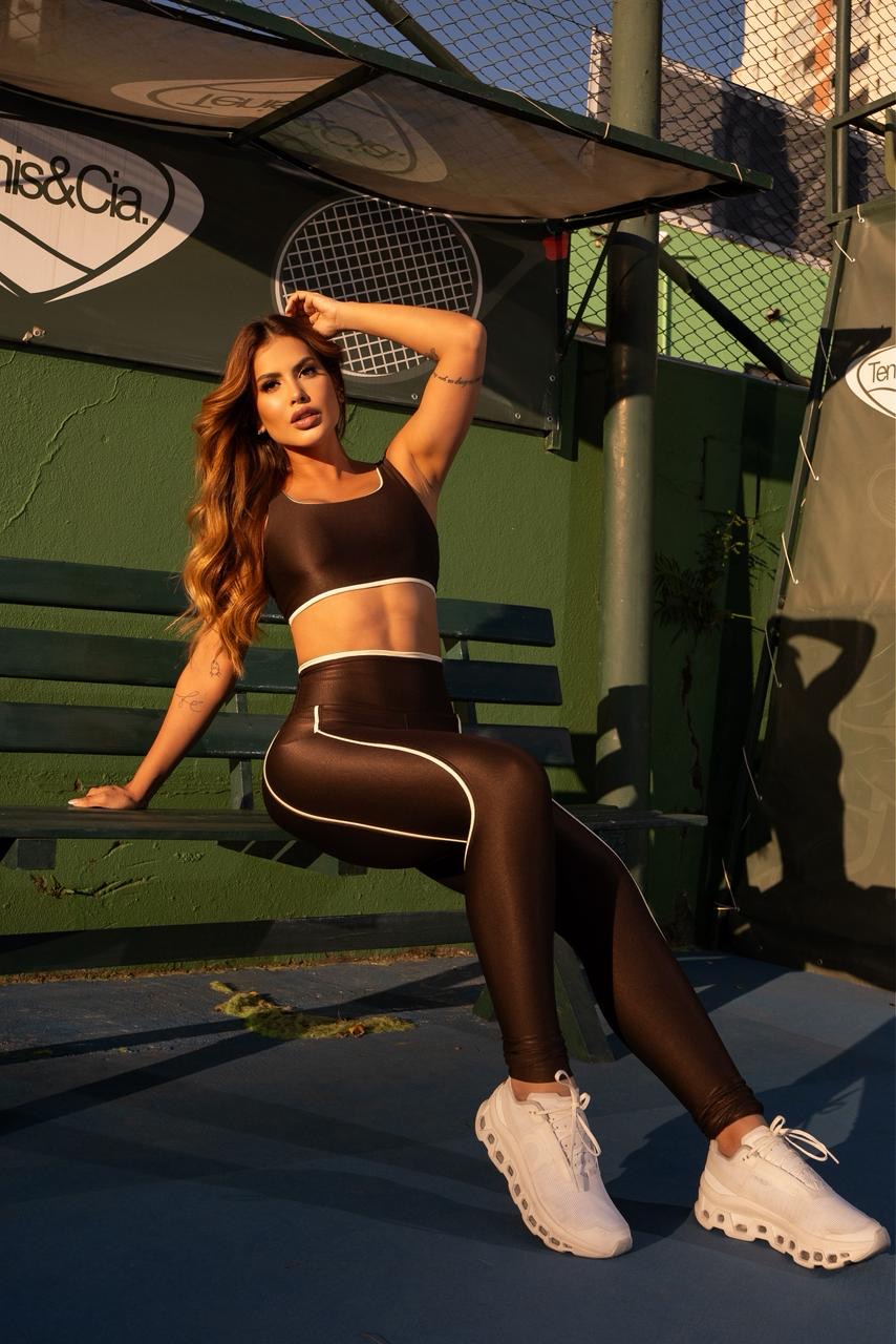 Conjunto fitness confeccionado no tecido wonder de compressão e top com bojo removível
