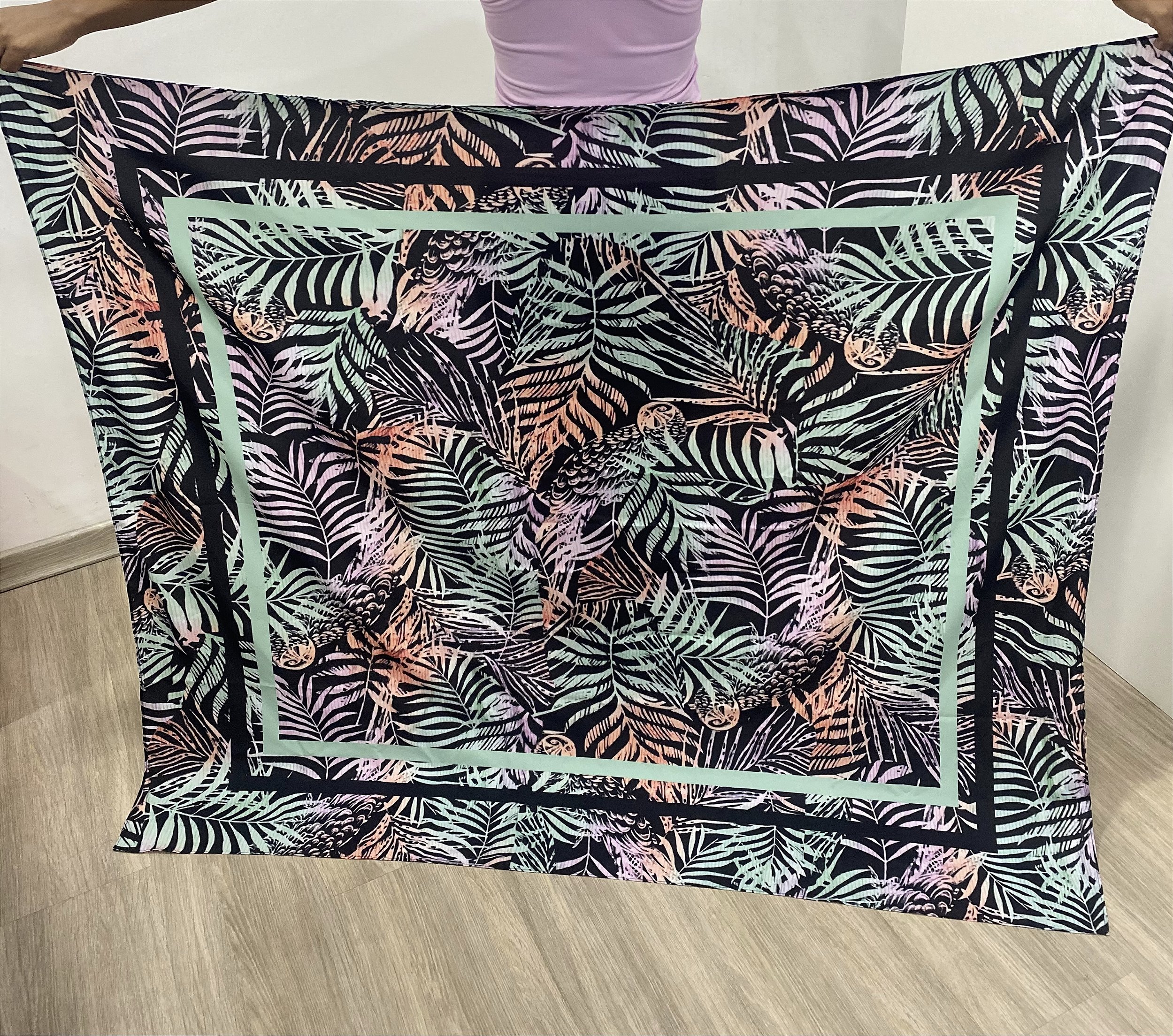 Pareo Canga Resort - Folhagens Fundo Preto